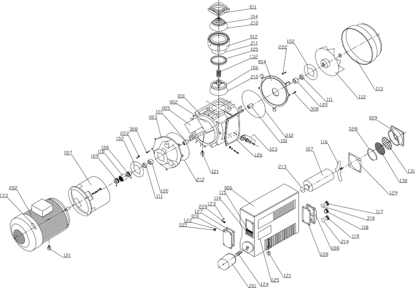 Her vakum pompası için bağımsız bir su borusu ve bağımsız bir elektrik kontrol kutusu gereklidir.